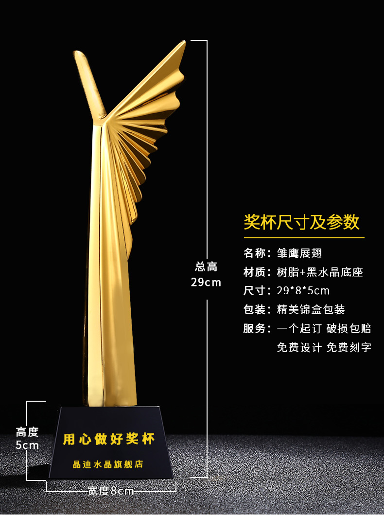 雛鷹展翅 鍍金獎杯 創意獎杯專業定制 企業員工頒獎禮品訂制