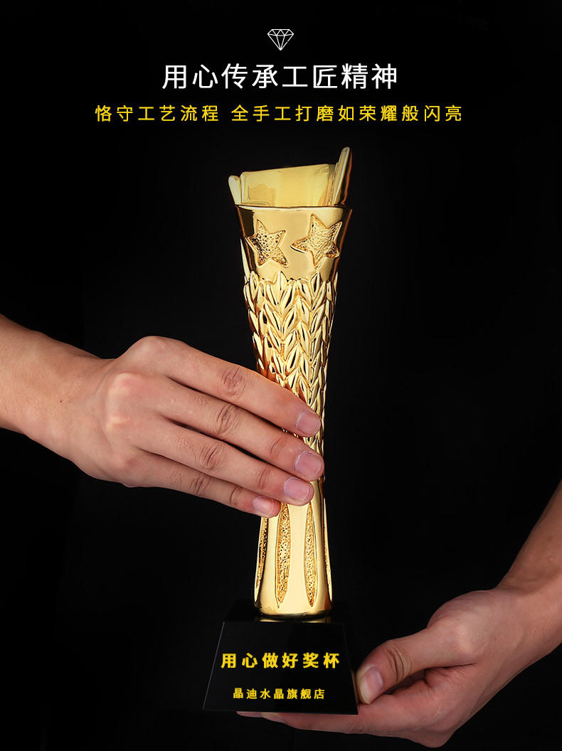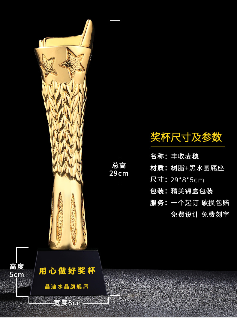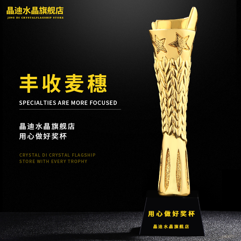 豐收麥穗鍍金獎杯 創意獎杯專業定制 企業員工頒獎禮品訂制