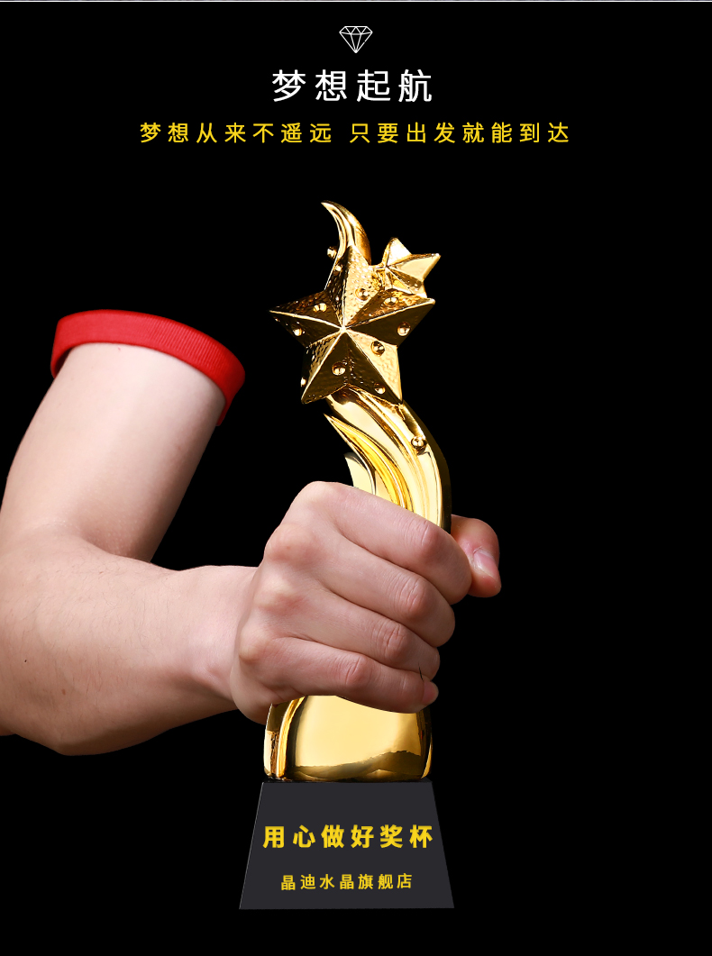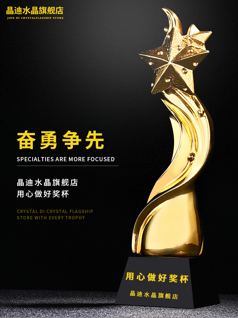 奮勇爭先 鍍金獎杯 創(chuàng)意獎杯專業(yè)定制 企業(yè)員工頒獎禮品訂制