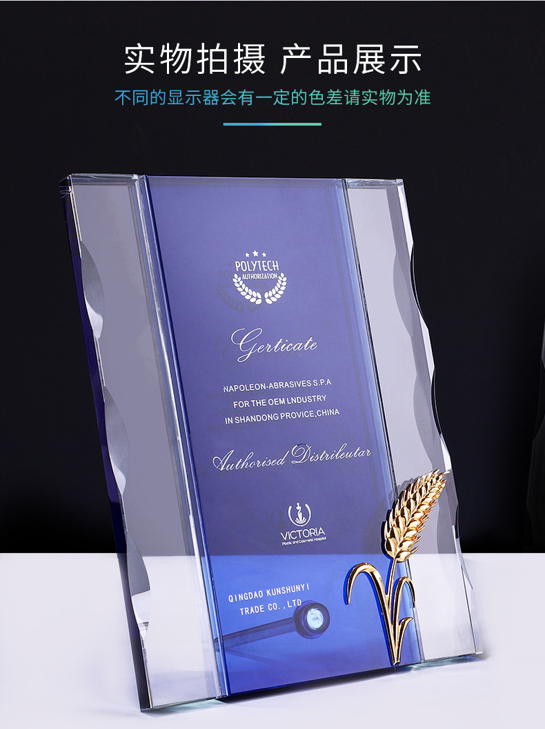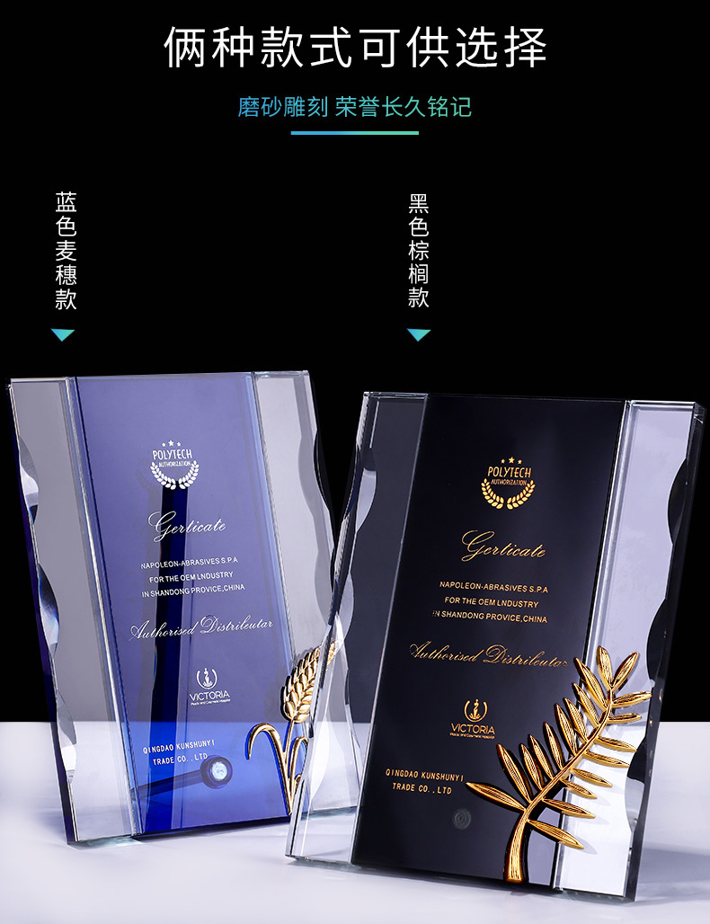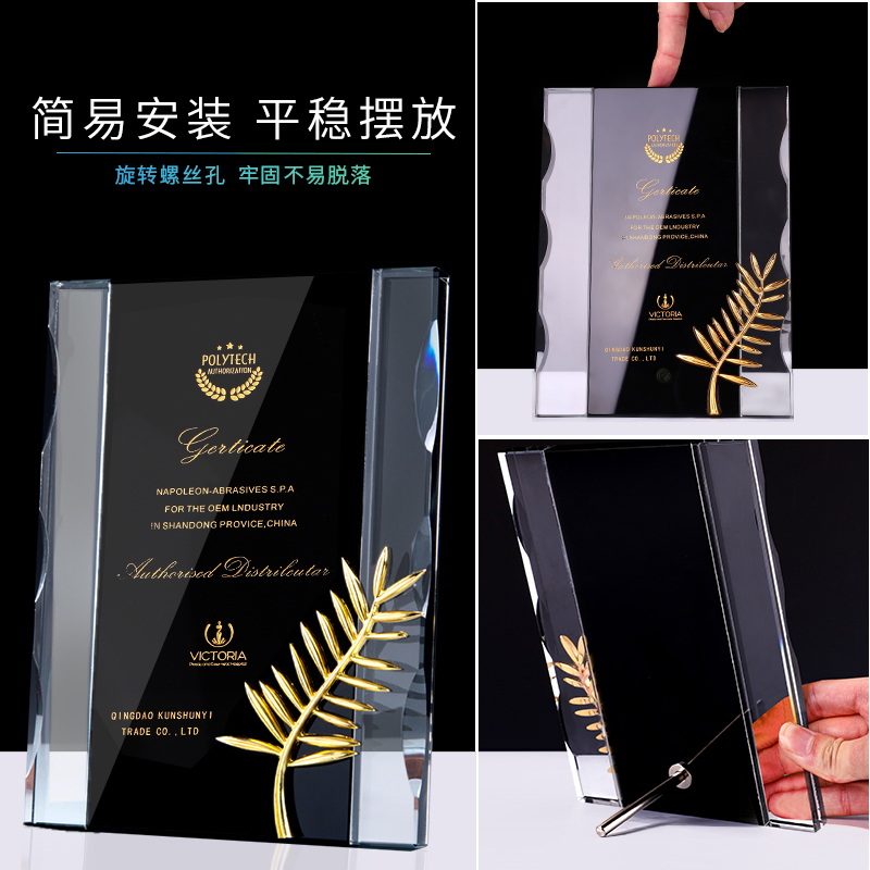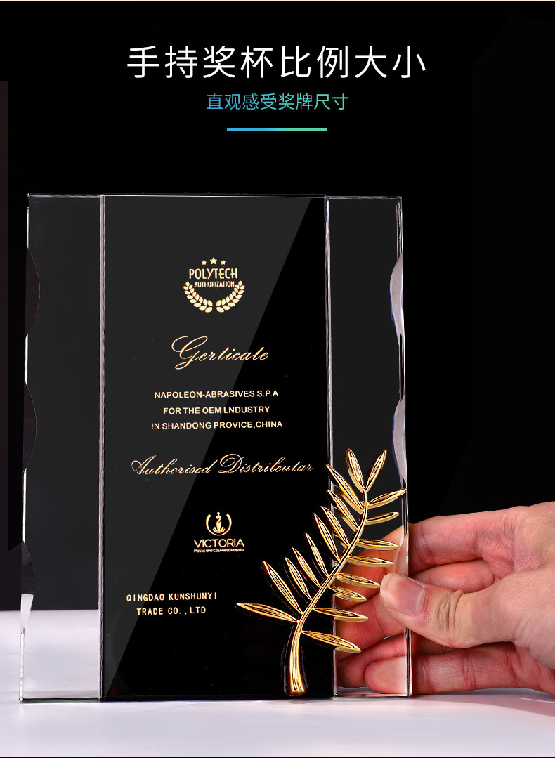 獎牌定制定做棕櫚獎定制授權牌榮譽牌匾代理經銷商加盟牌水晶獎杯