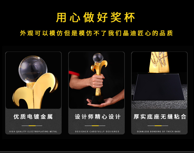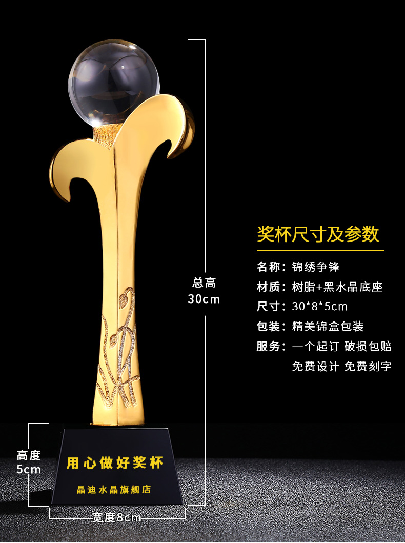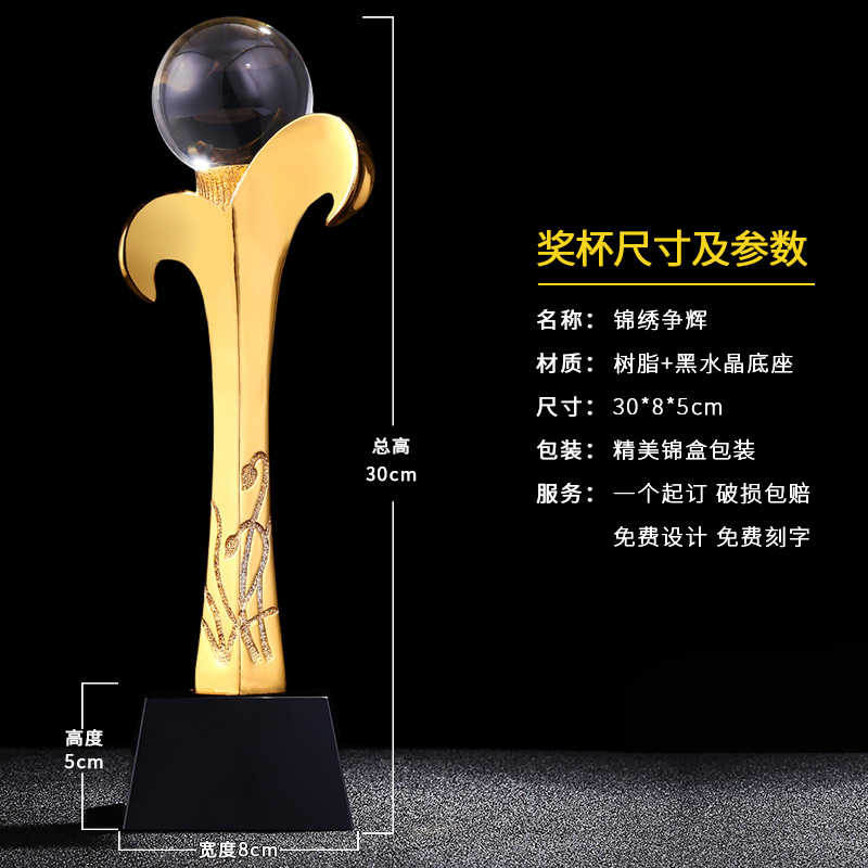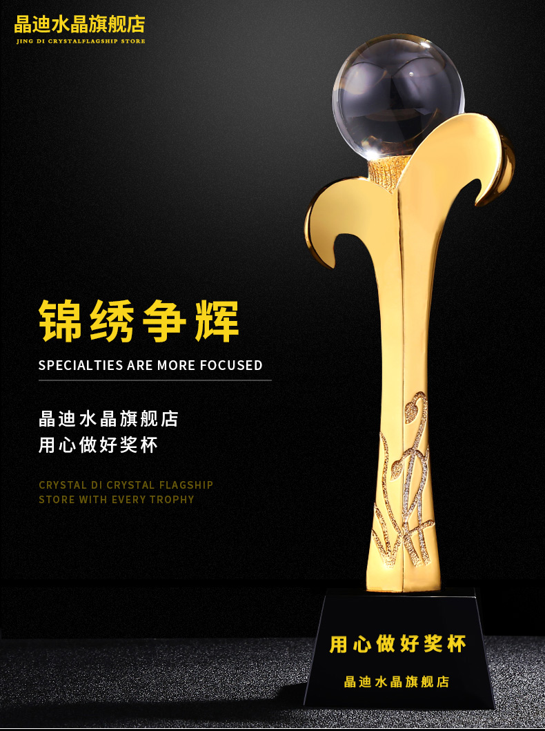 錦繡爭輝 鍍金獎杯 創意獎杯專業定制 企業員工頒獎禮品訂制