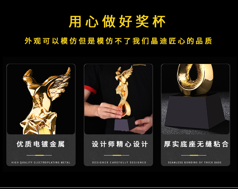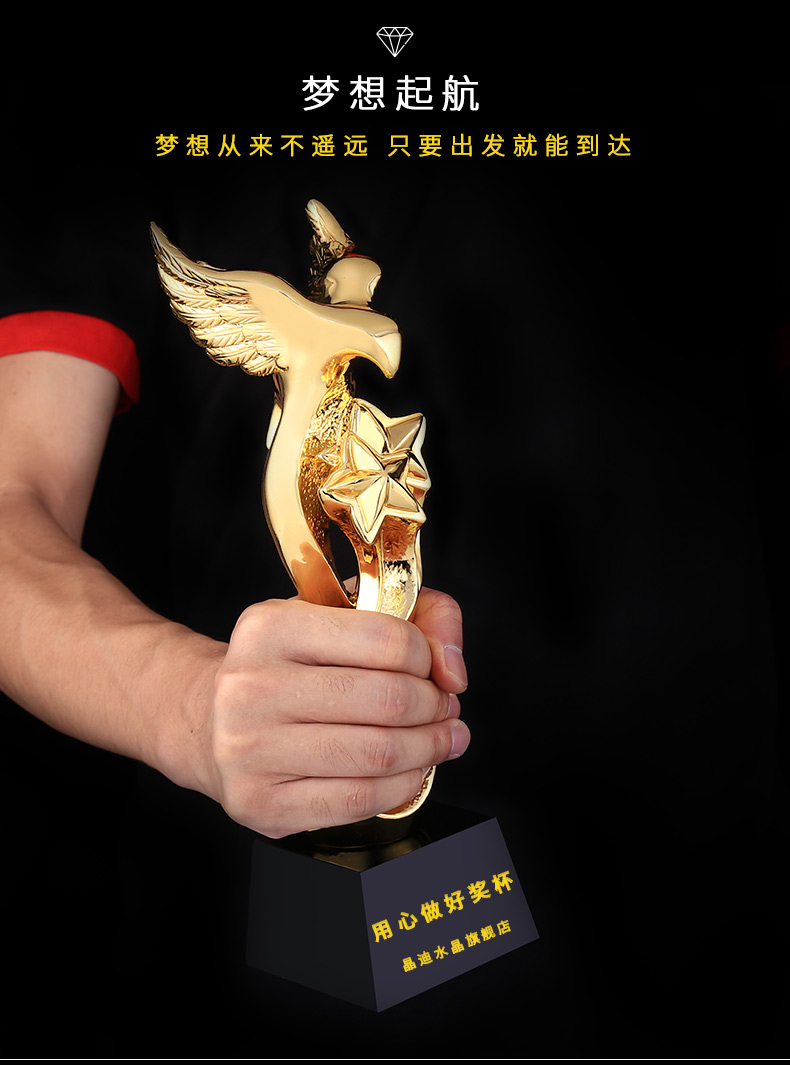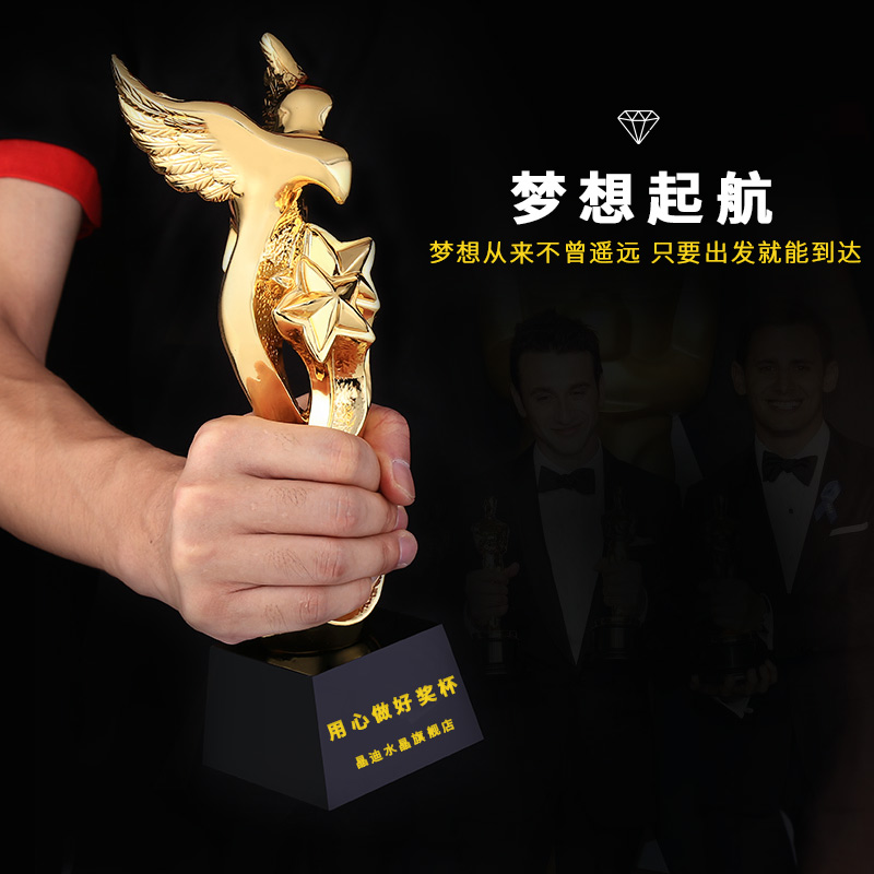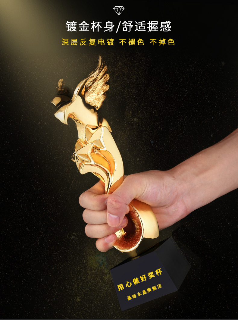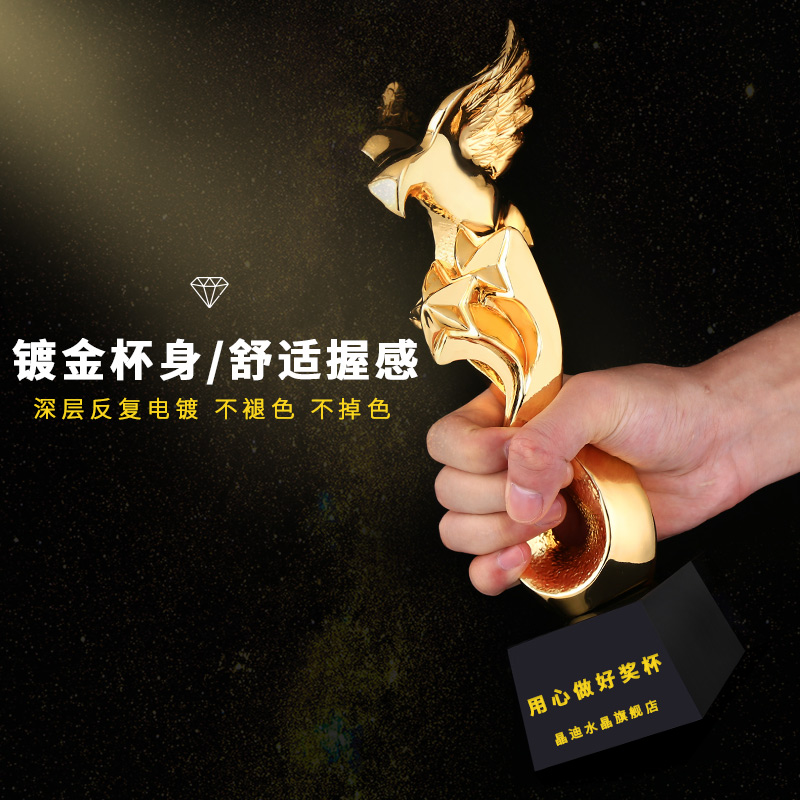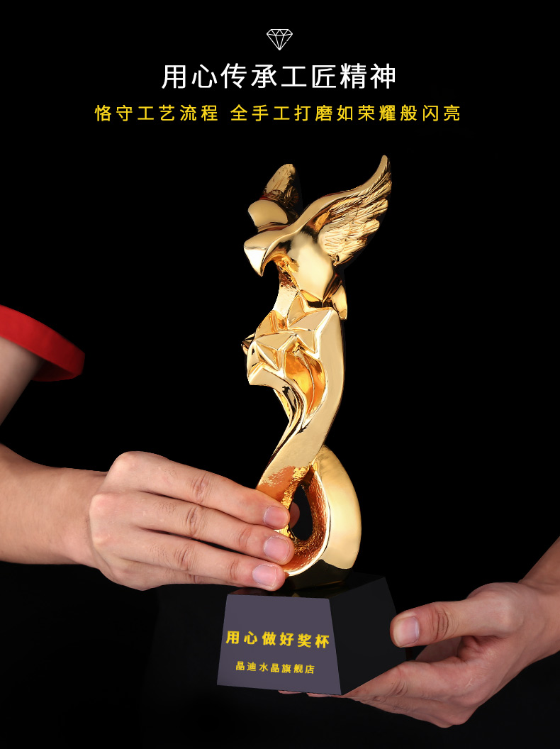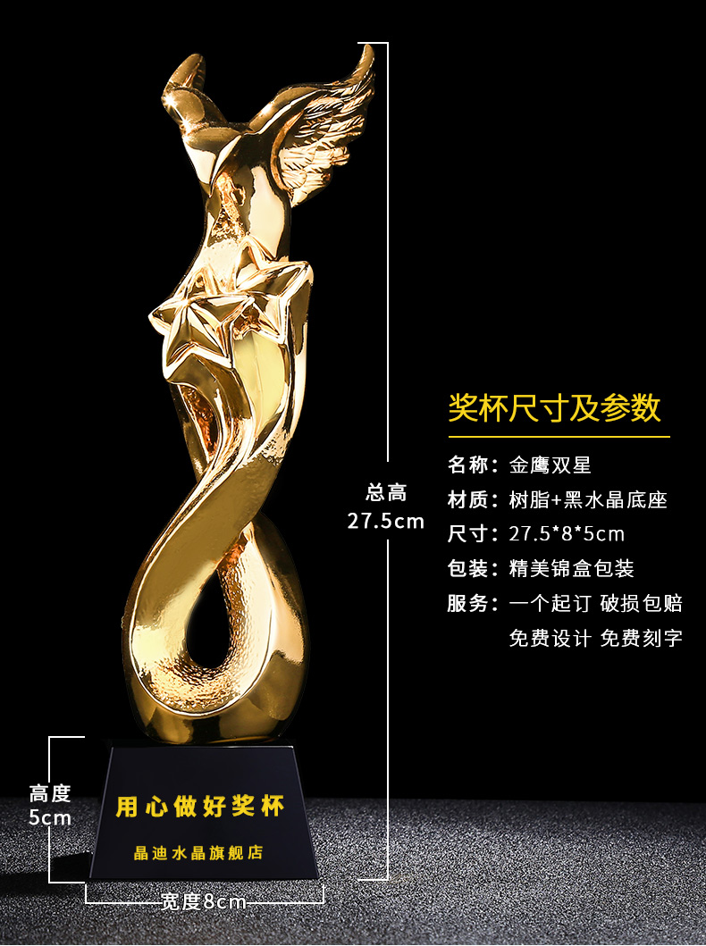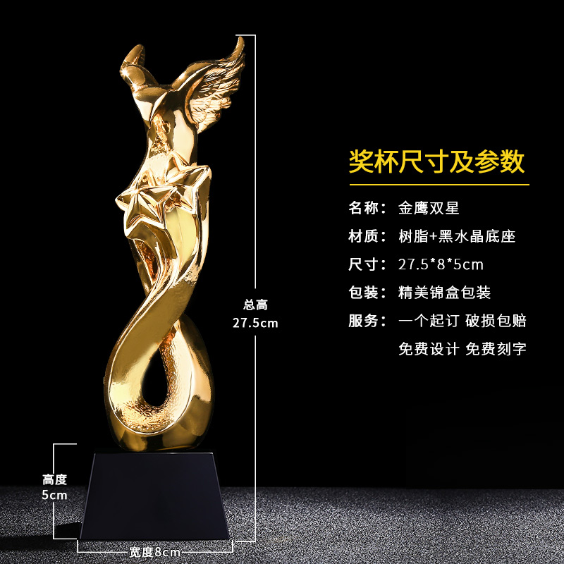 金鷹雙星 鍍金獎杯 創意獎杯專業定制 企業員工頒獎禮品訂制
