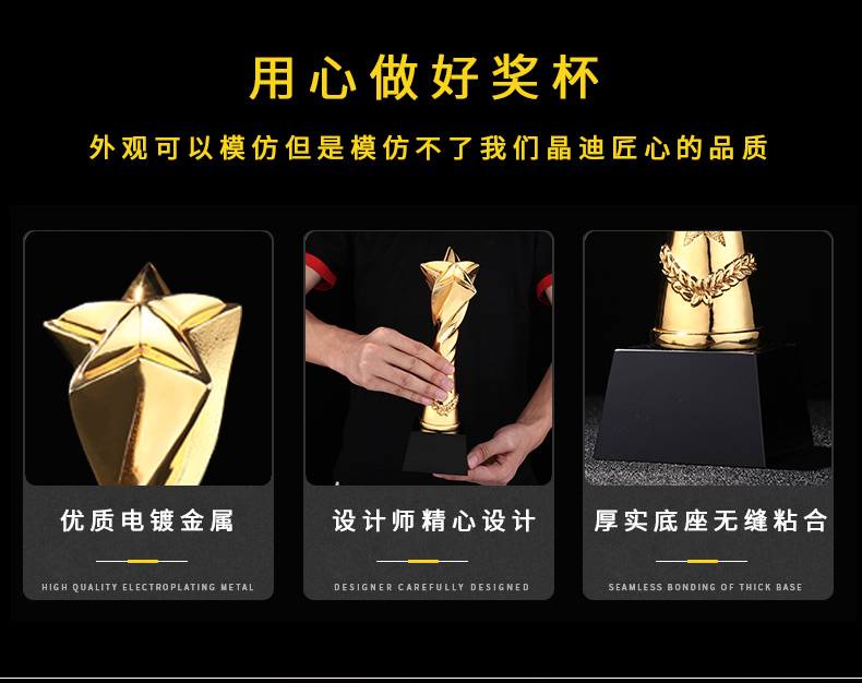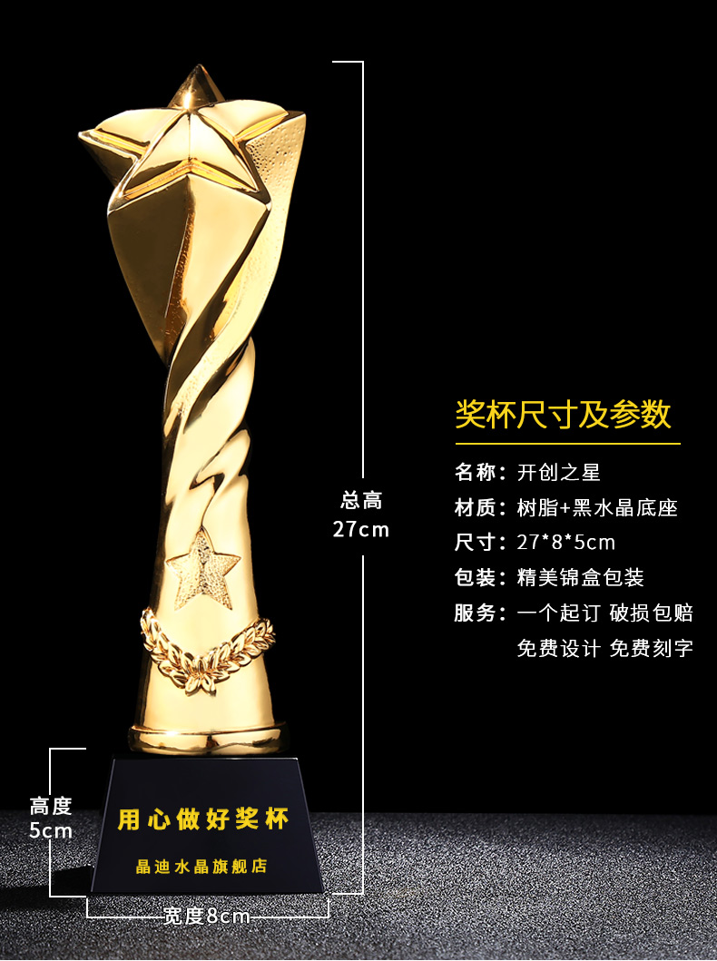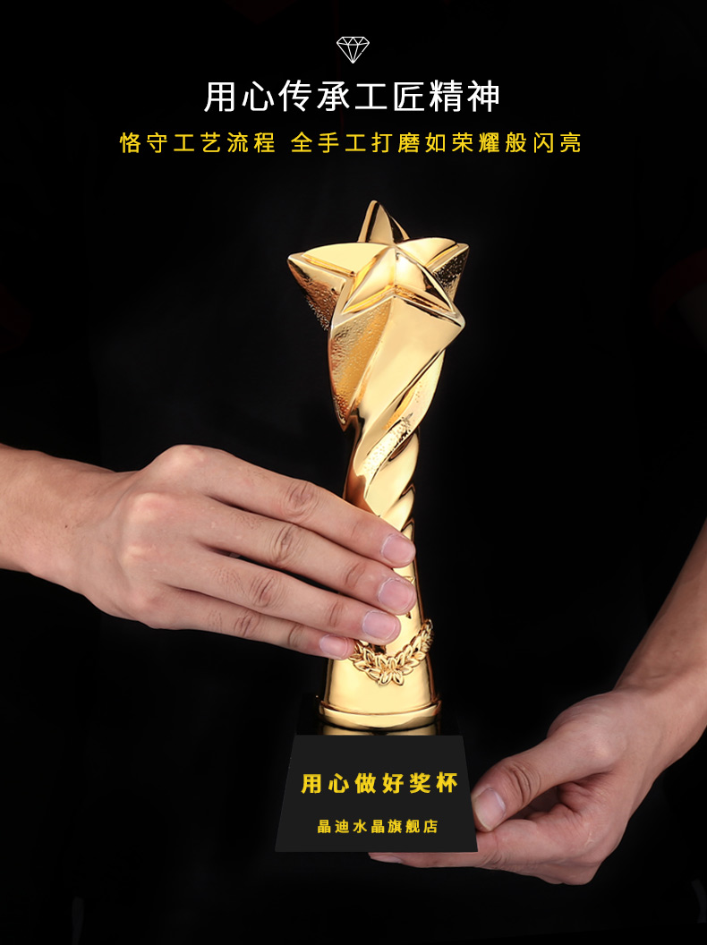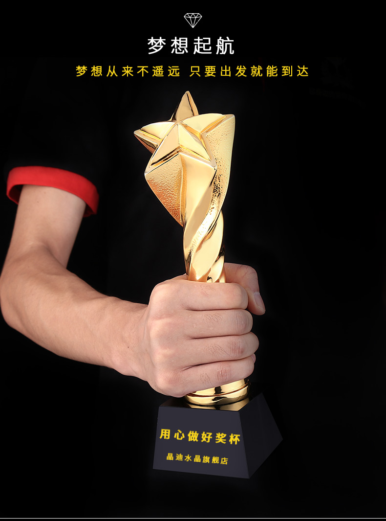 開創之星 鍍金獎杯 創意獎杯專業定制 企業員工頒獎禮品訂制