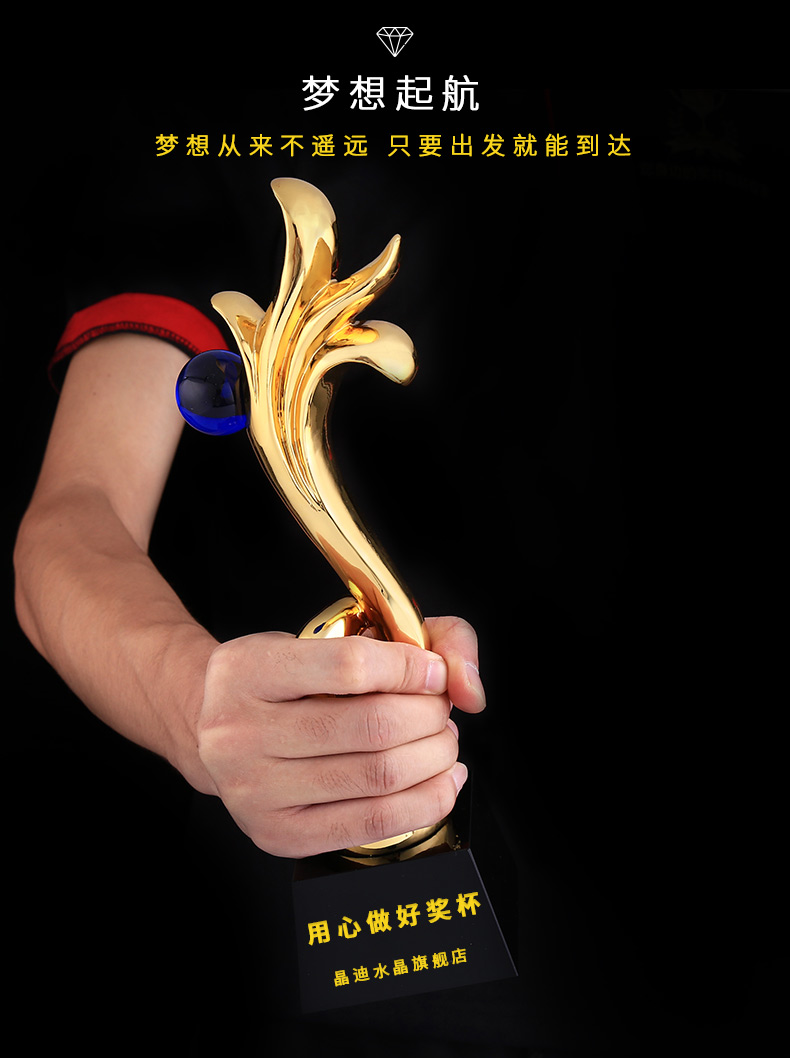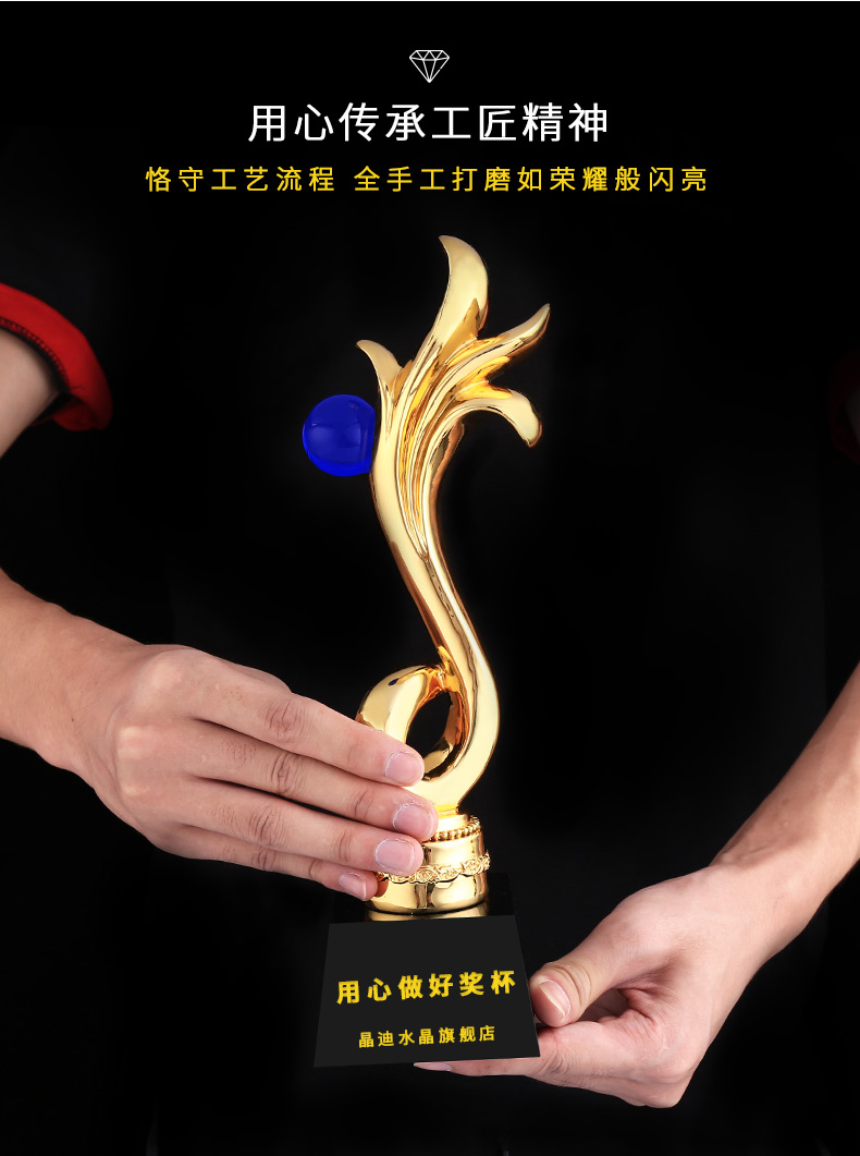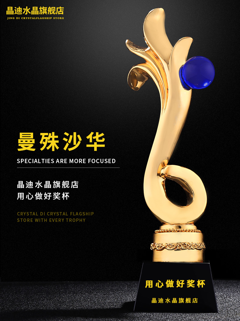 曼珠沙華 鍍金獎杯 創意獎杯專業定制 企業員工頒獎禮品訂制