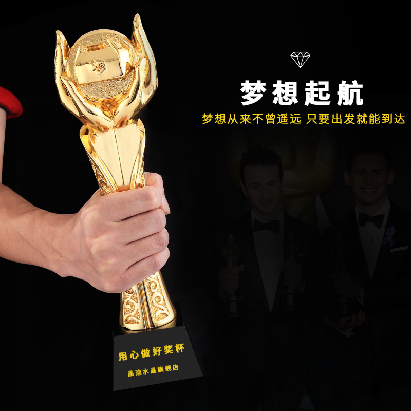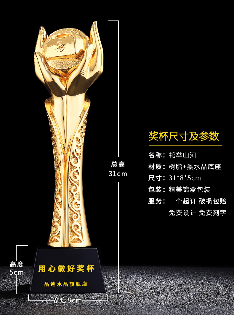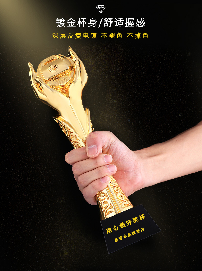 托舉山河 鍍金獎杯 創(chuàng)意獎杯專業(yè)定制 企業(yè)員工頒獎禮品訂制