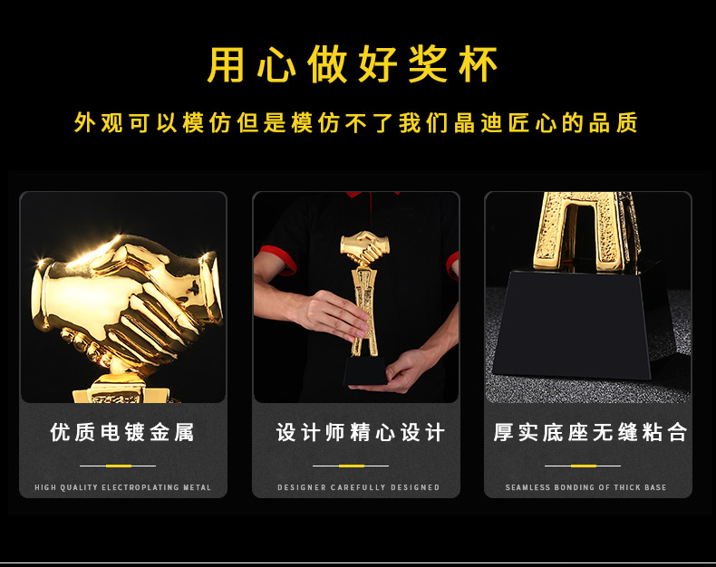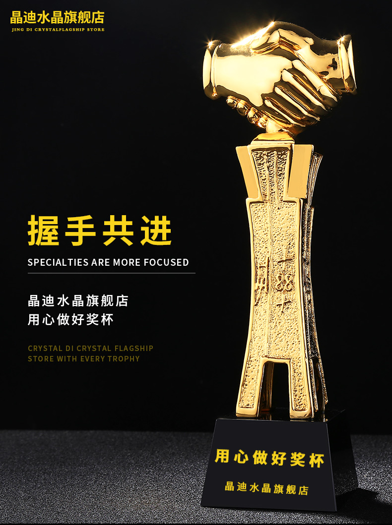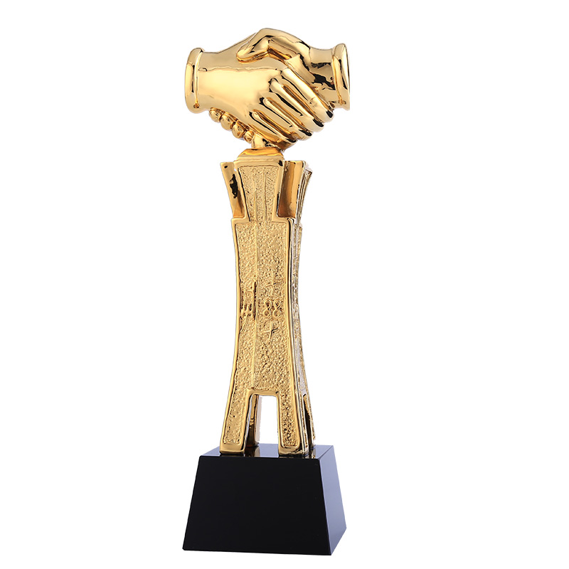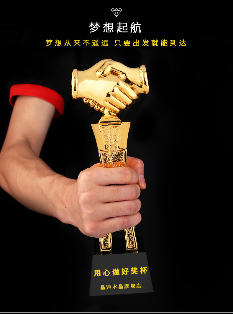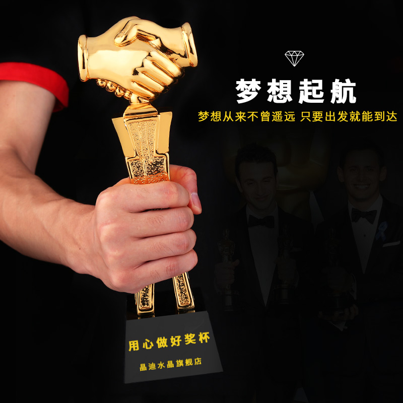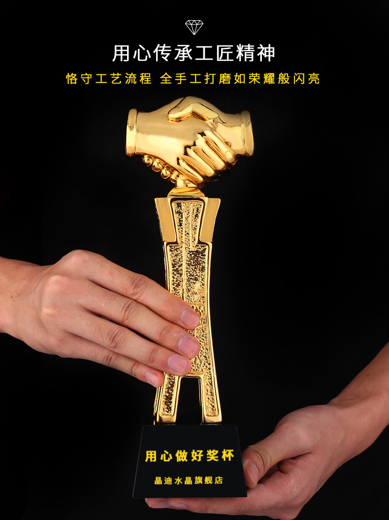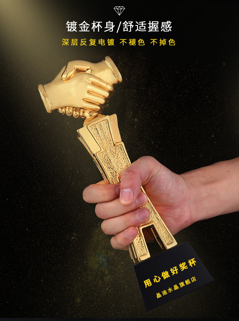 握手共進(jìn) 鍍金獎(jiǎng)杯 創(chuàng)意獎(jiǎng)杯專業(yè)定制 企業(yè)員工頒獎(jiǎng)禮品訂制