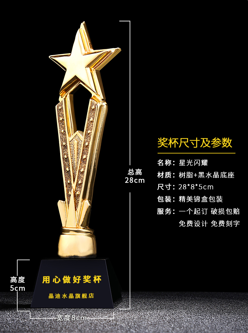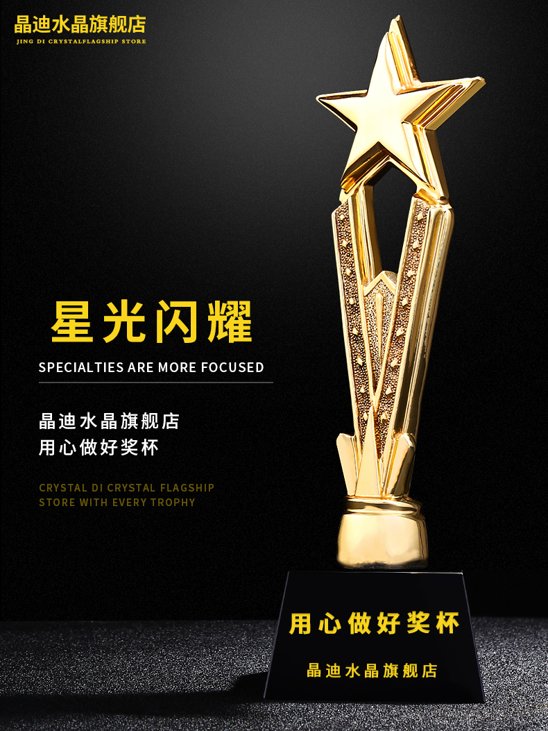 星光閃耀 鍍金獎杯 創意獎杯專業定制 企業員工頒獎禮品訂制