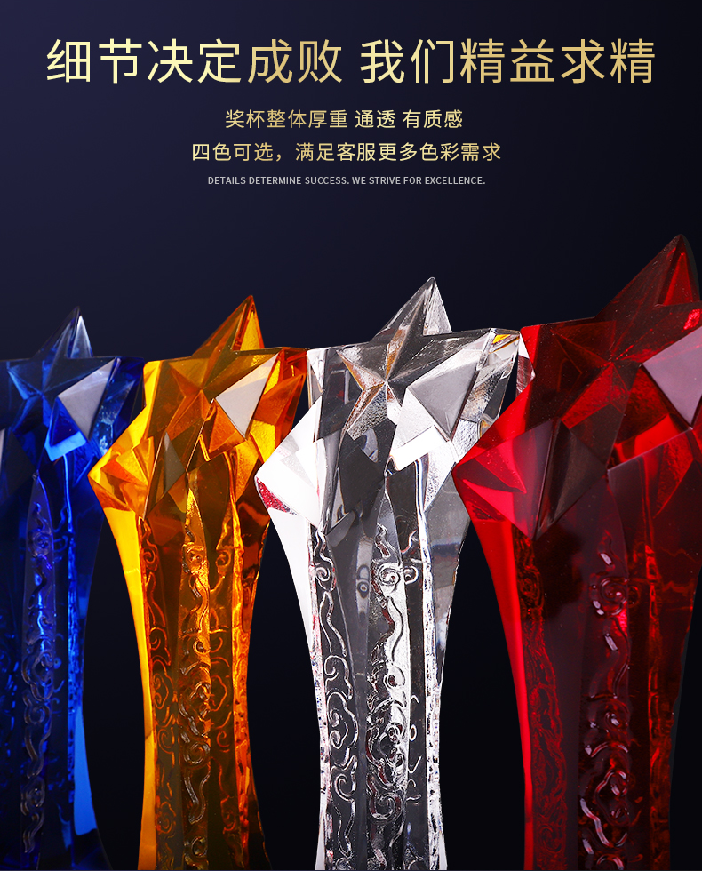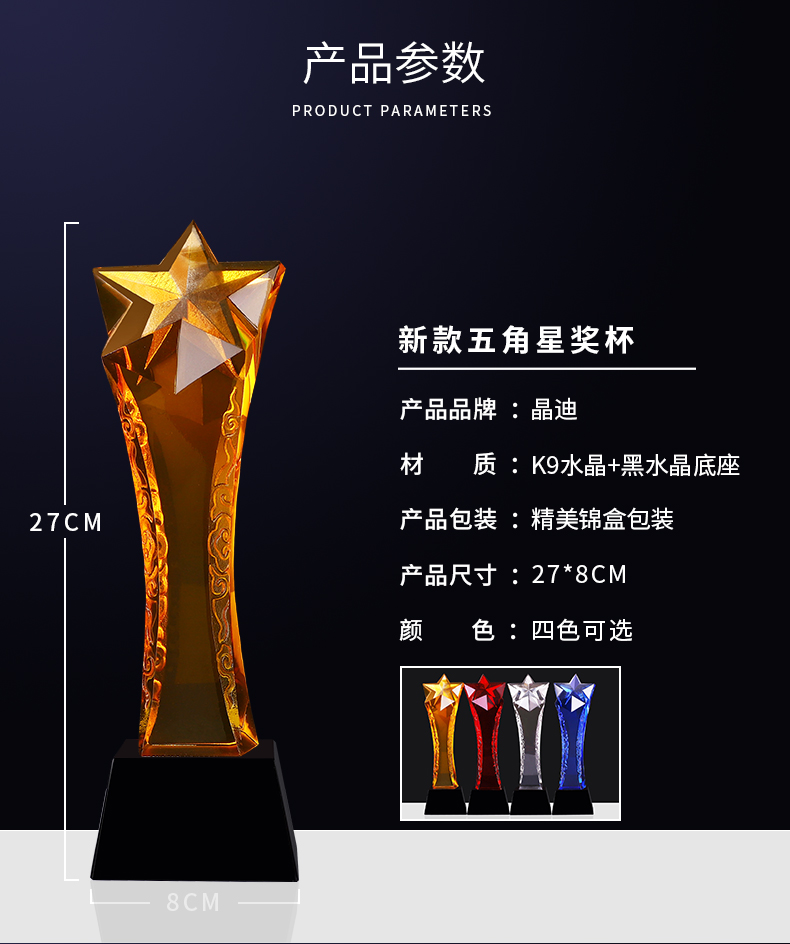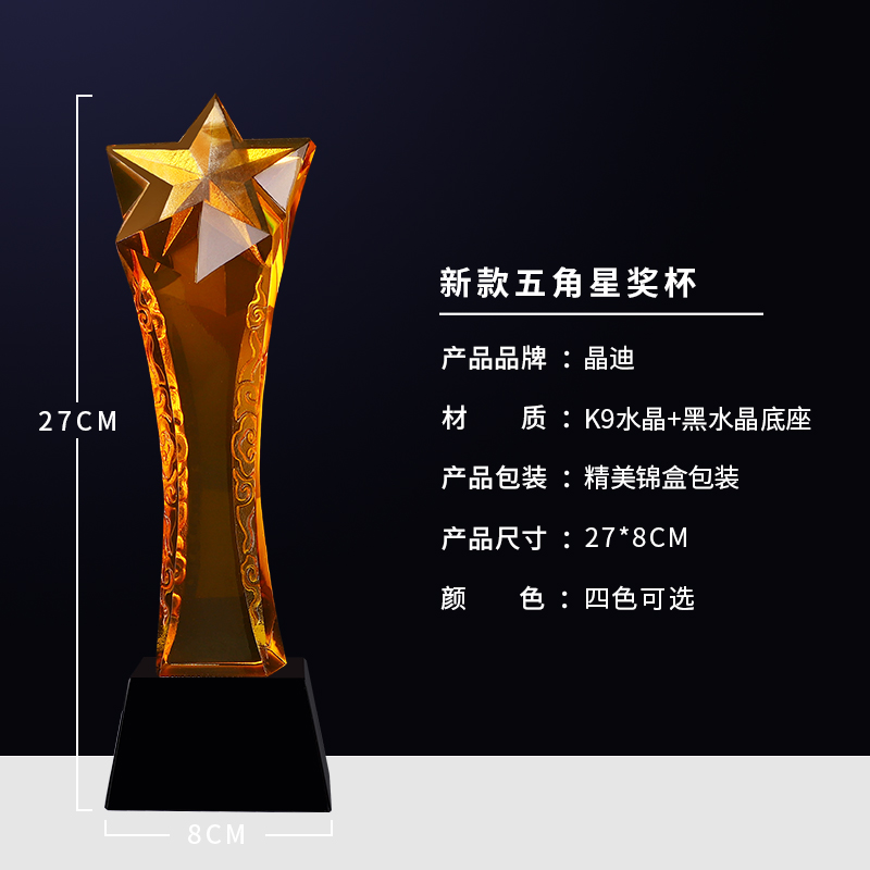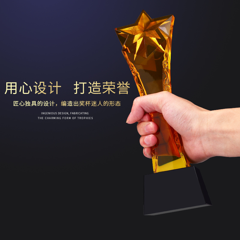 新款五角星水晶獎杯定制刻字運動會比賽年度員工頒獎創意獎品定做