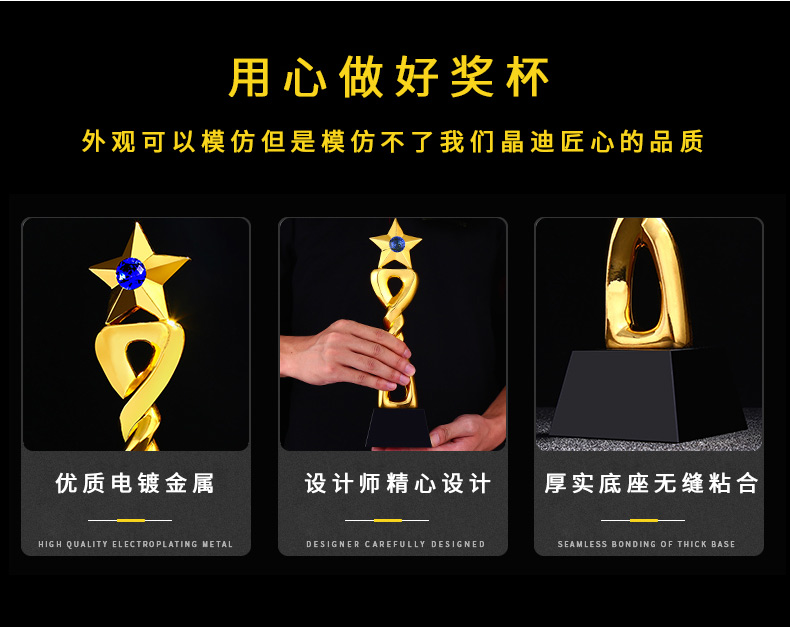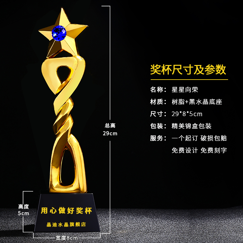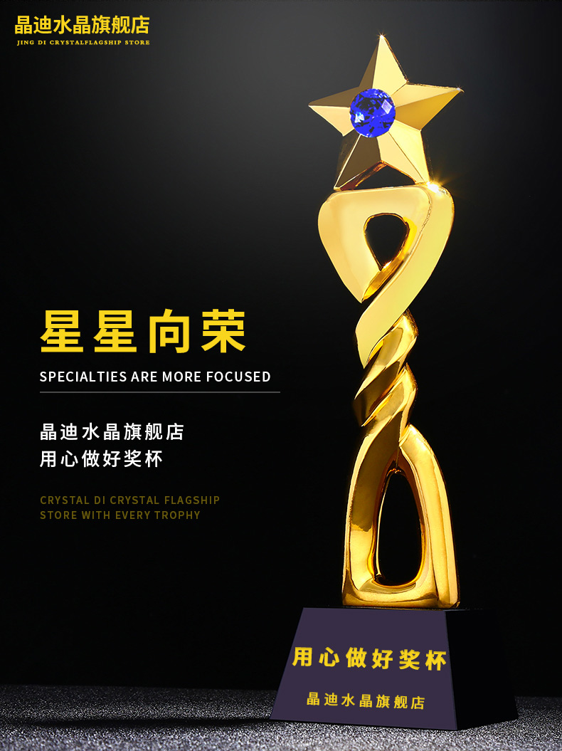 星星向榮 鍍金獎杯 創意獎杯專業定制 企業員工頒獎禮品訂制