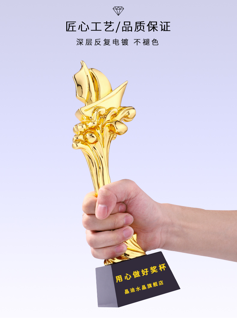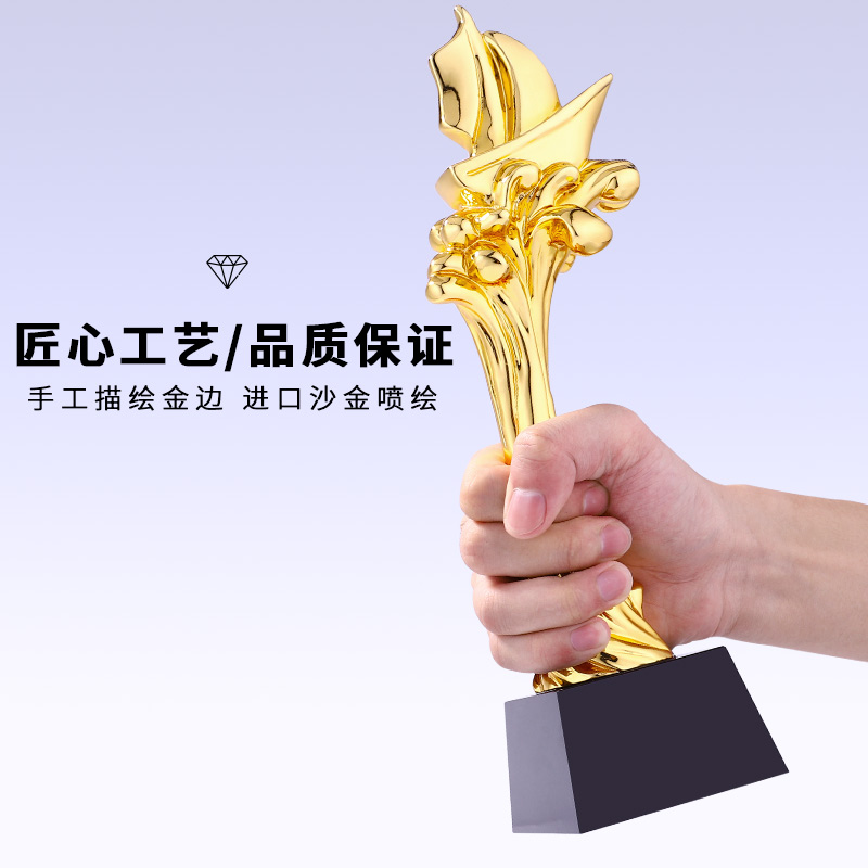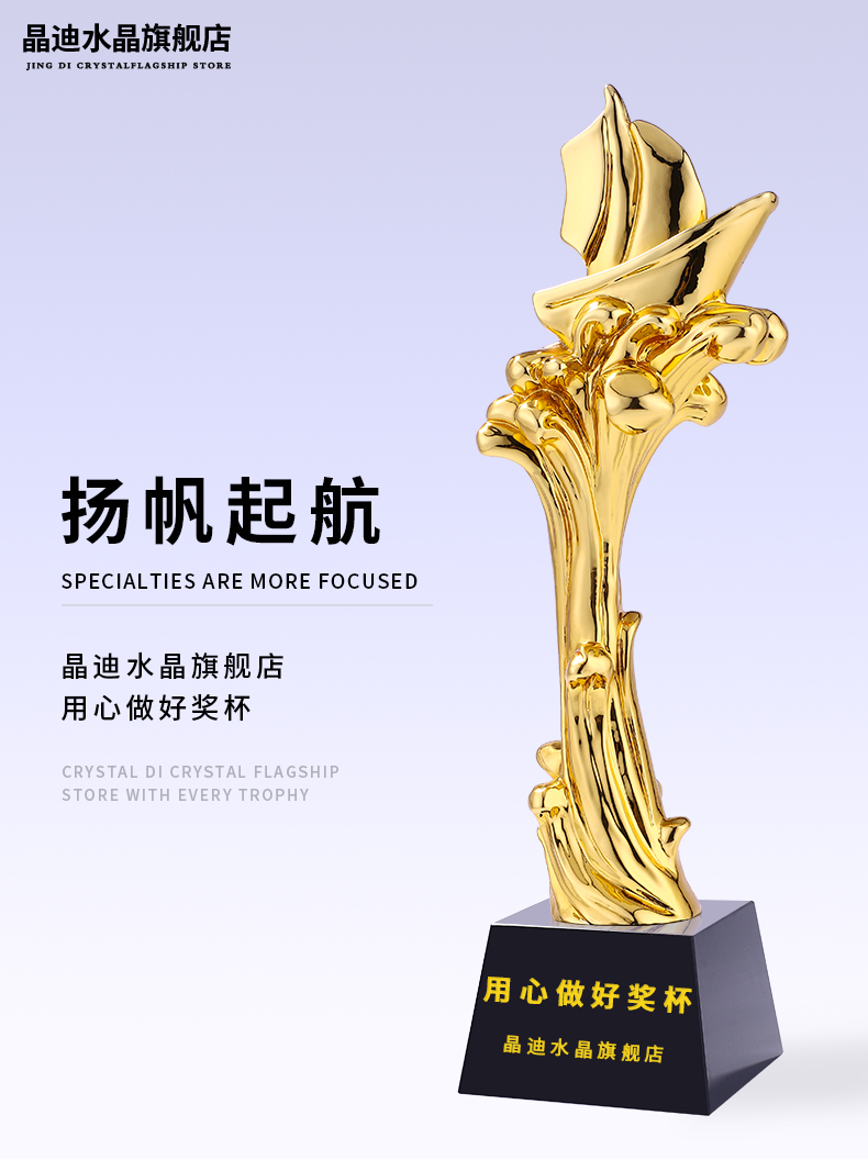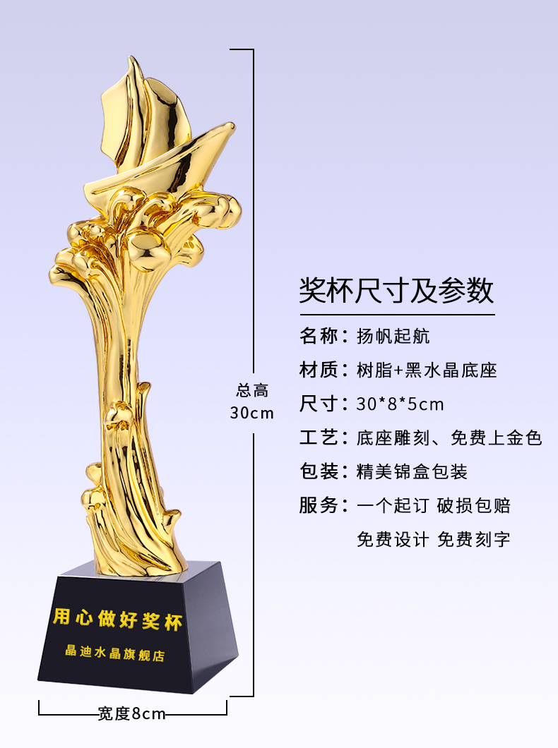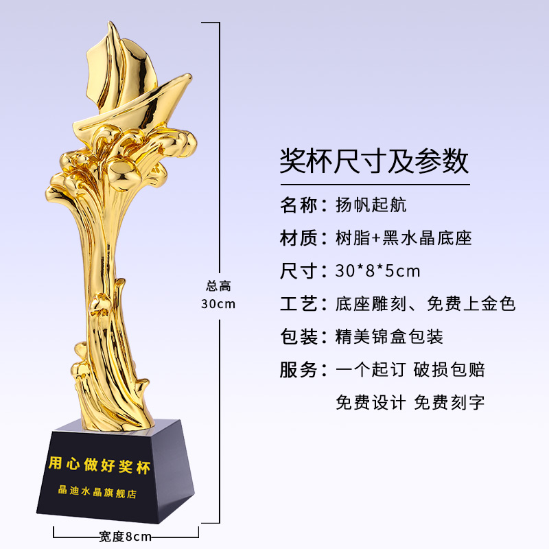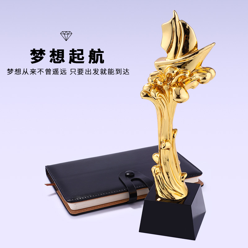 揚帆起航樹脂鍍金獎杯一帆風順精英年會企業優秀員工教師獎杯定制