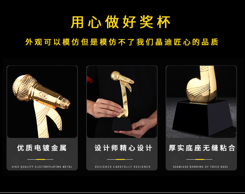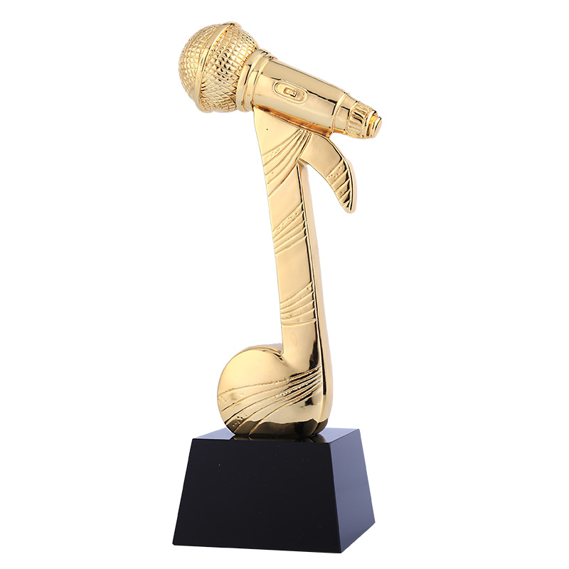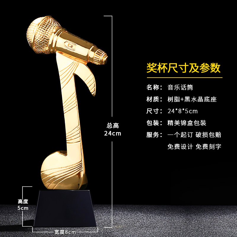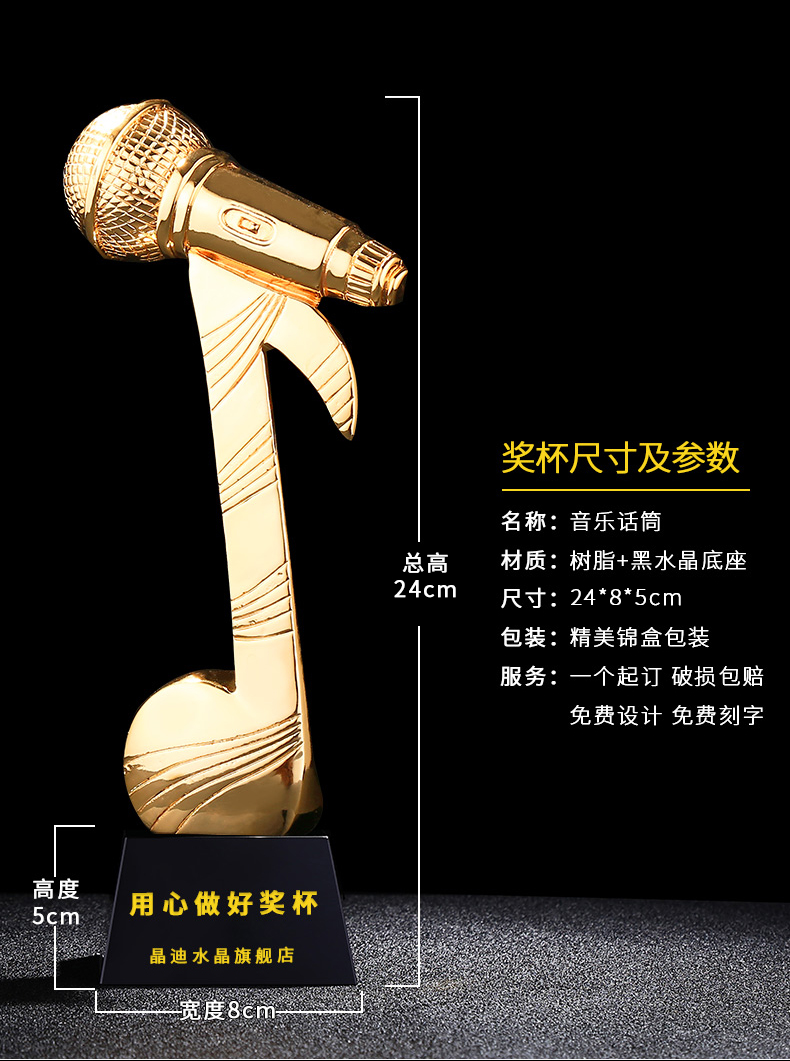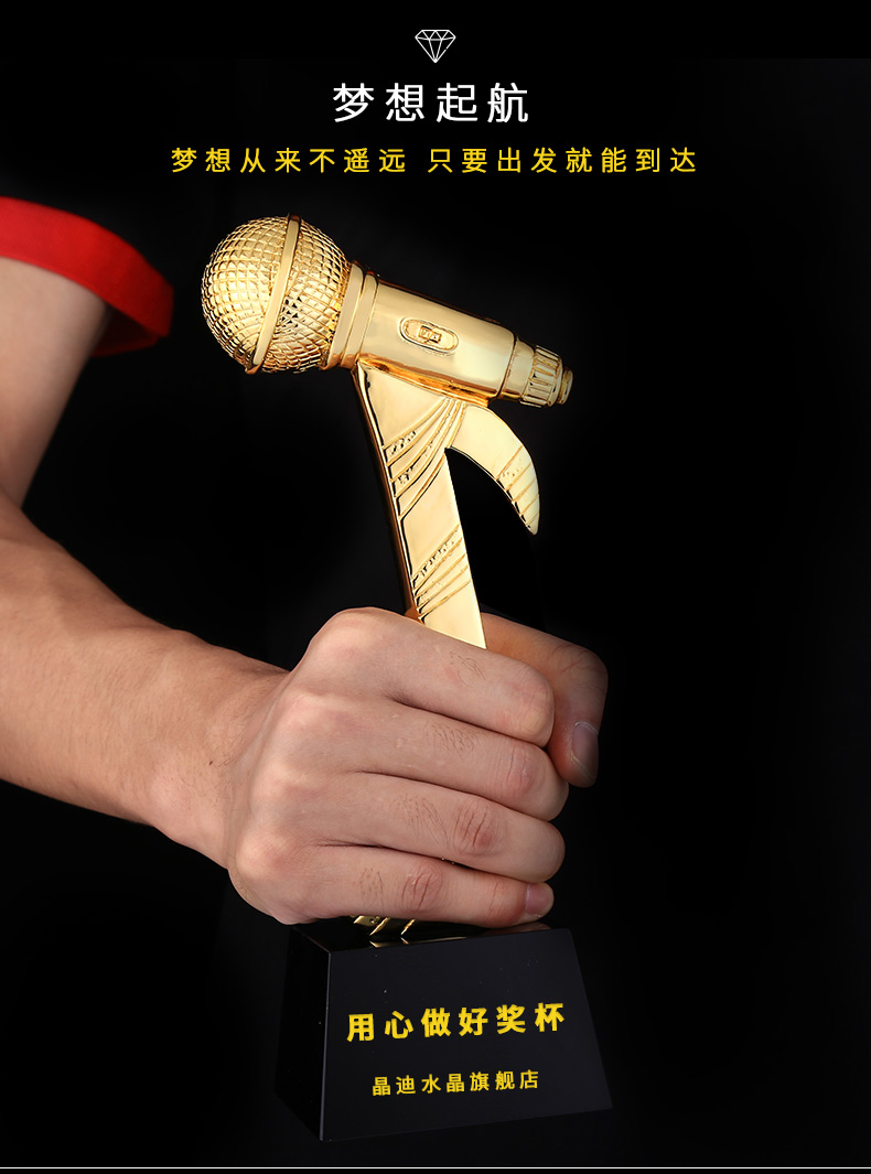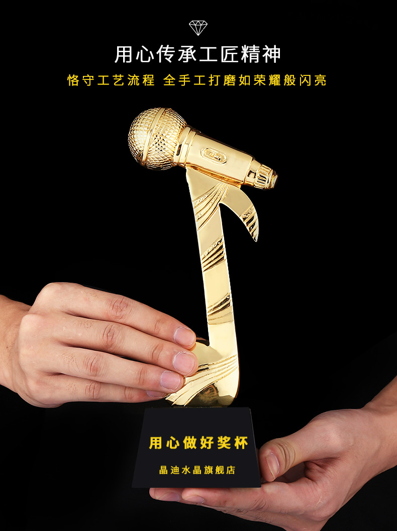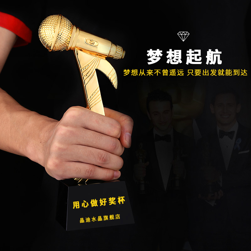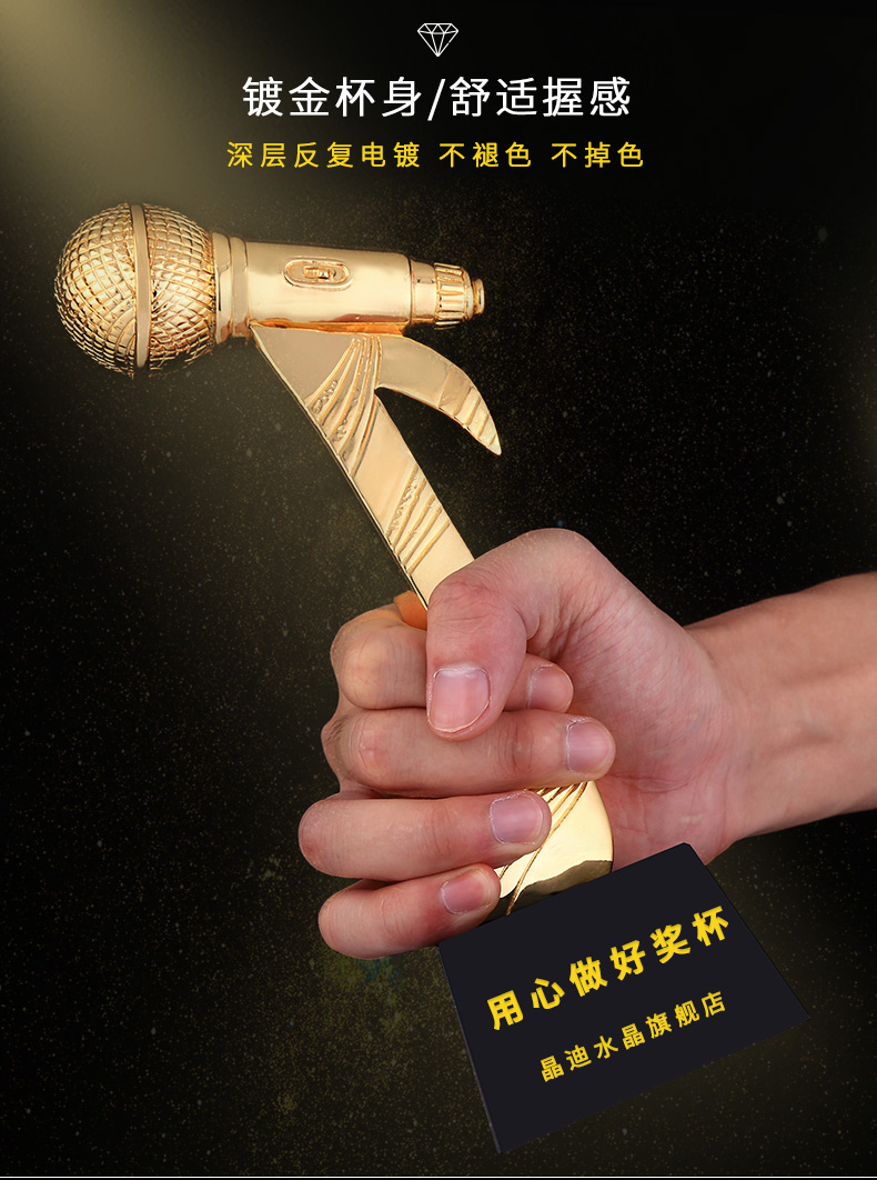 音樂話筒 鍍金獎杯 創意獎杯專業定制 企業員工頒獎禮品訂制