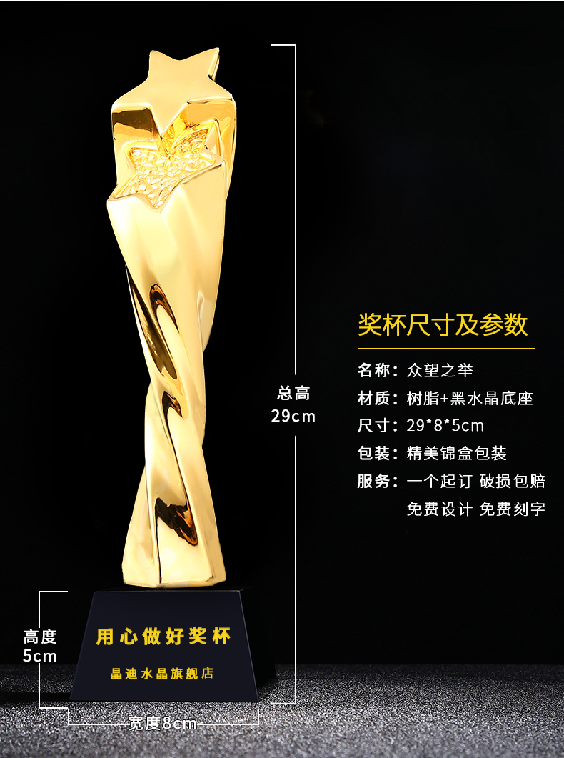 眾望之舉 鍍金獎杯 創意獎杯專業定制 企業員工頒獎禮品訂制