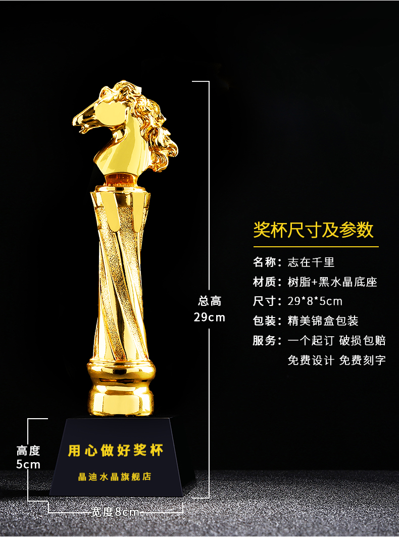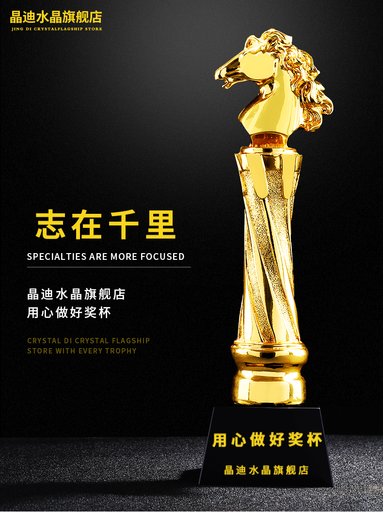 志在千里 鍍金獎杯 創意獎杯專業定制 企業員工頒獎禮品訂制